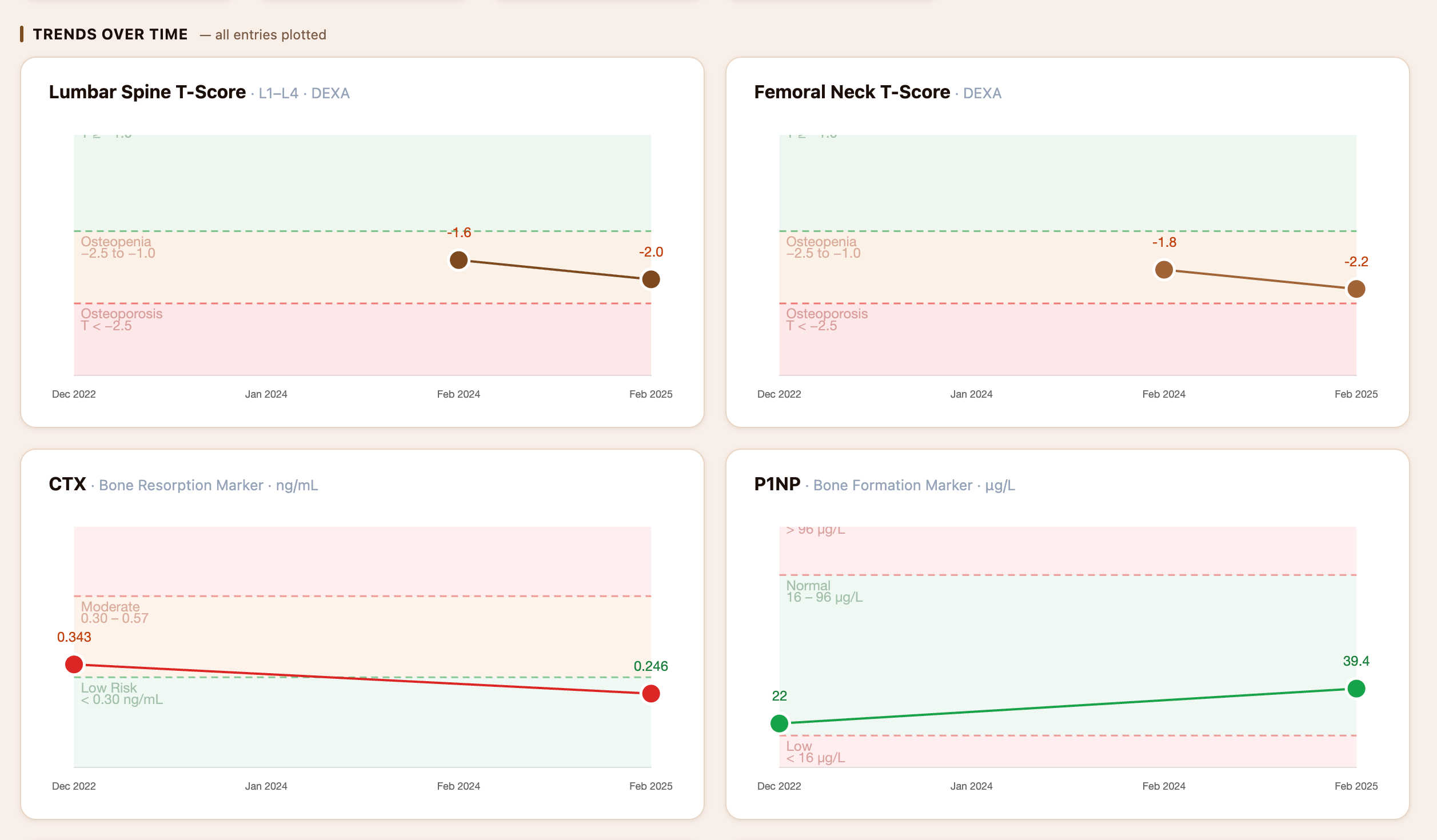 My Bone Health Tracker. With sample data